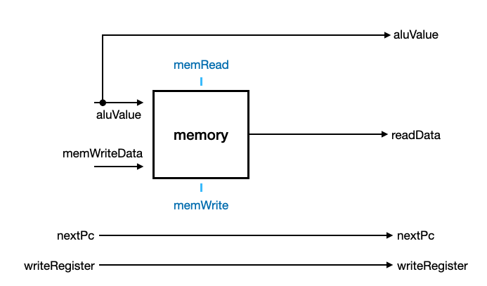 - memToReg : 레지스터에 쓸 값을 결정한다. (memoryReadData or aluValue)