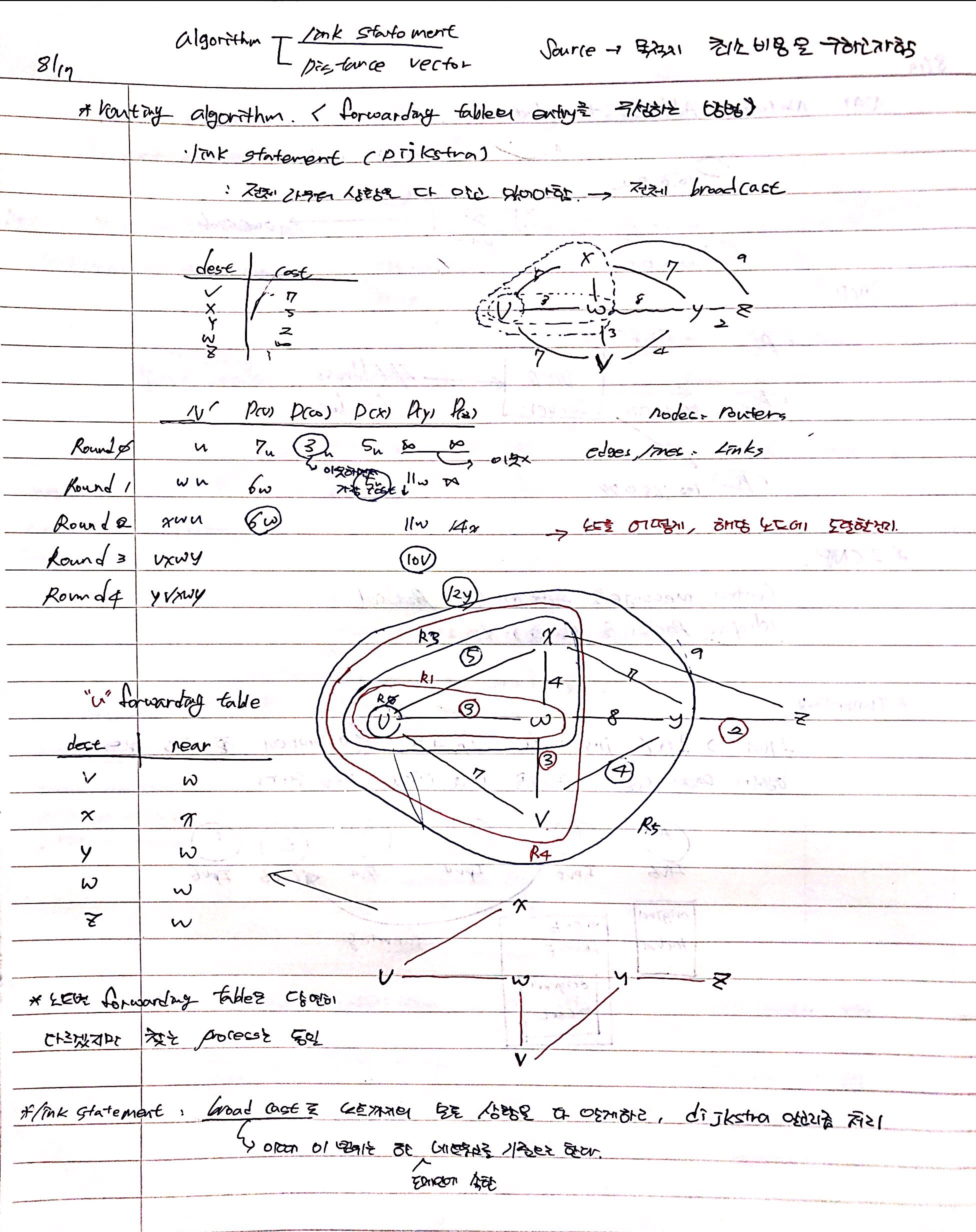 ** 노드 별 forwarding table은 당연히 다르겠지만 다음 목적지를 찾는 프로세스는 동일하다.