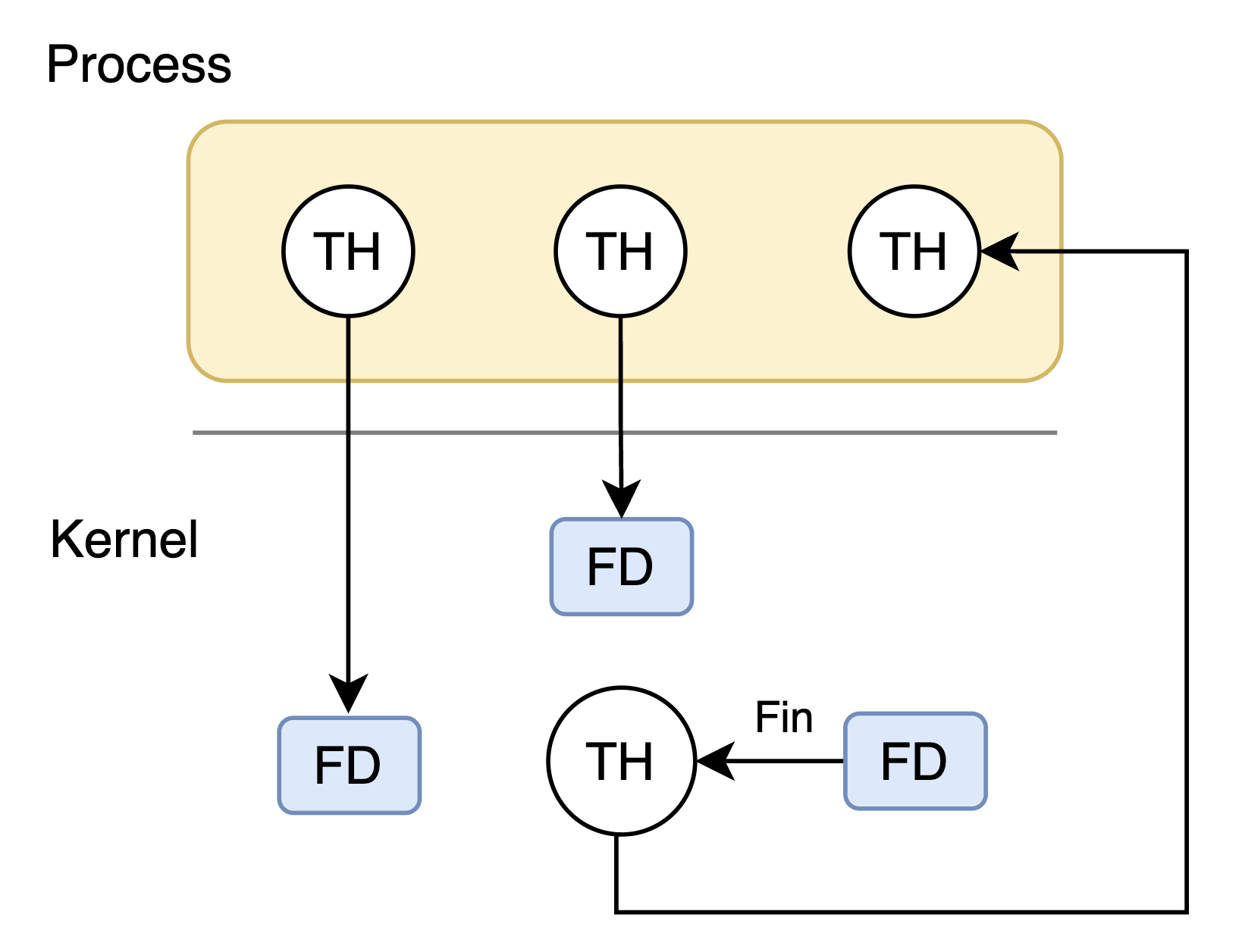 처음 이 '대기 없이 이어감'을 들었을 때는, 새로운 스레드를 사용하는 것 외에는 방법이 떠오르지 않았다. 여러 방식이 있겠지만, 이번 개선에서 사용한 Reactive MongoDB나 WebClient의 방식은 멀티플렉싱에 답이 있었다. WebClient는 Netty, Reactive MongoDB는 MongoDB 드라이버 위에서 동작하고, 이들은 커널 단의 I/O 멀티플렉싱 커멘드를 사용하여 논 블록킹을 구현한다. Api 요청, DB 쿼리 등 응답에 대기가 필요한 작업을 전달하고, 처리 완료 이벤트를 미리 만들어둔 이벤트 루프 스레드를 사용하여 처리한다.